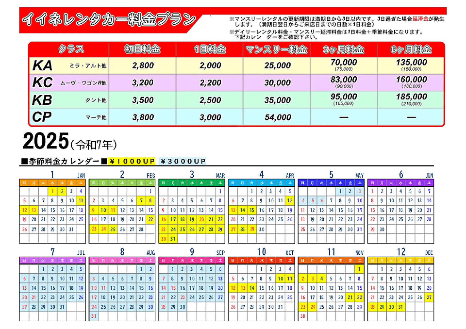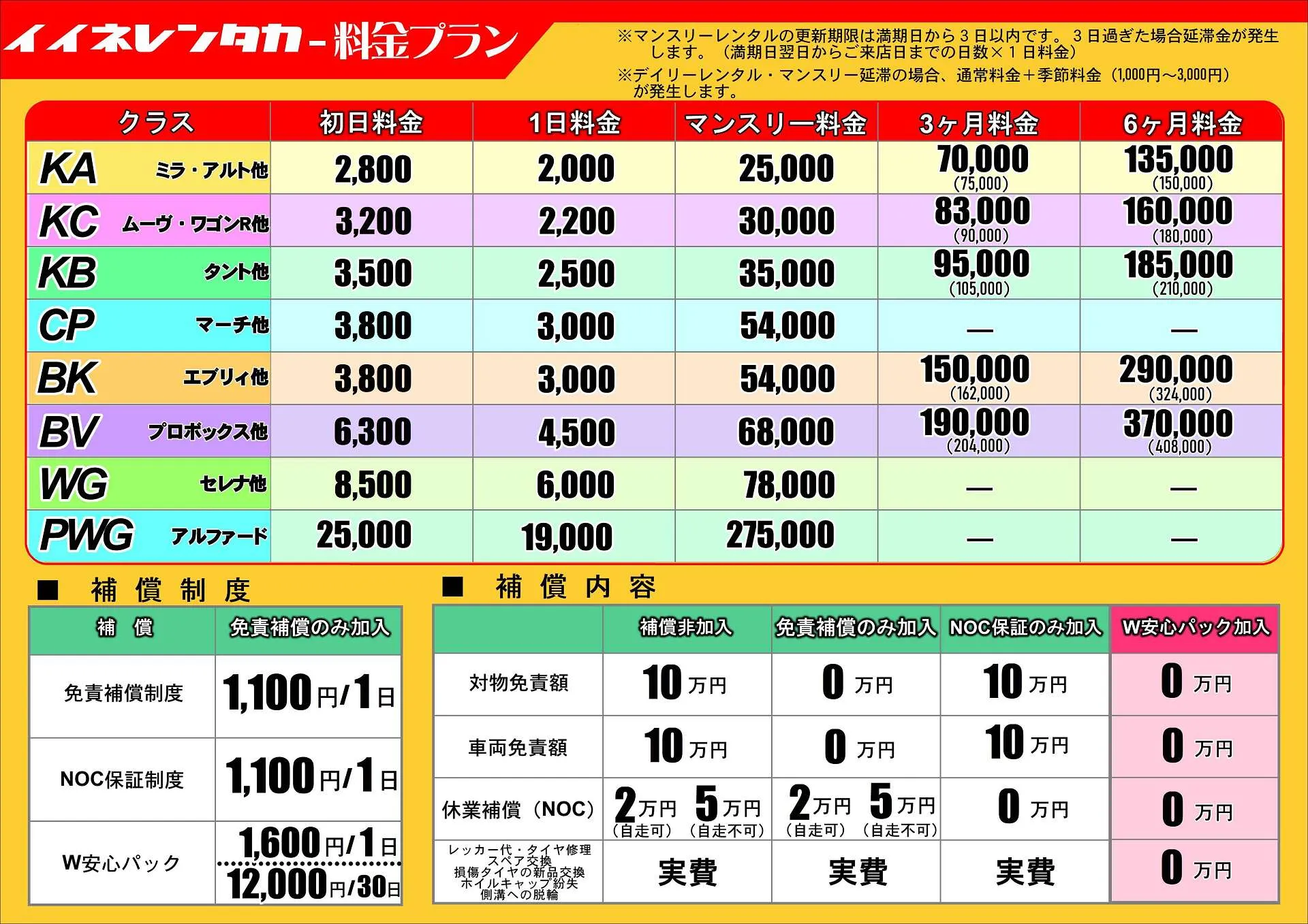 との声にお応えして新料金プランスタートです。今まではKBクラスだったムーヴやワゴンRなどのハイト系軽自動車に新価格適用しました。